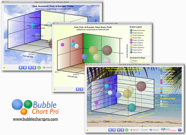 I am pleased to announce the introduction of 3D bubble charts in Bubble Chart Pro™ version 5.2! 3D bubble charts let you plot 4 data sets in a single chart. In addition to the X and Y axes and bubble size, 3D bubble charts display a third dimension: the Z-axis. 3D bubble charts let you […]
