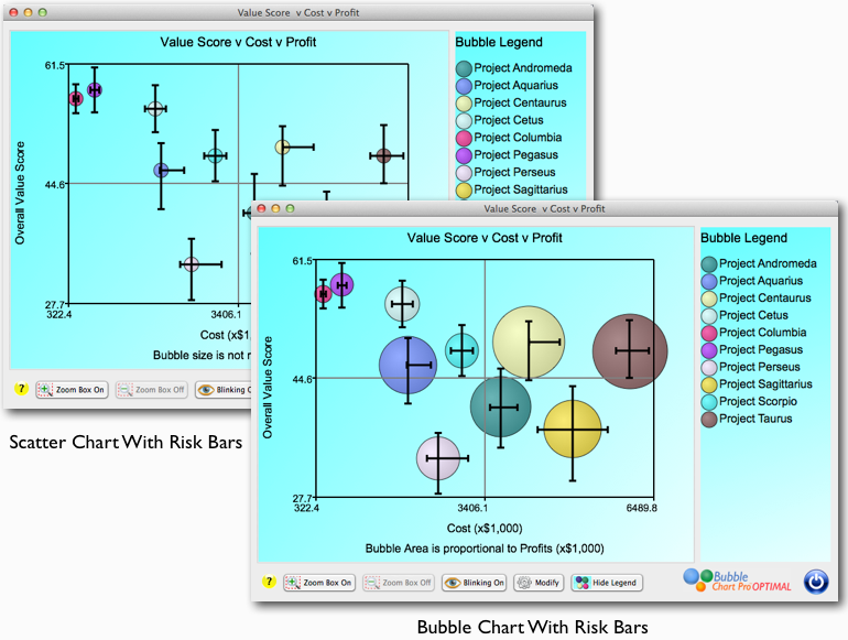 Projects rarely finish exactly on-budget or on-time, which is why it is important to be able see a range of different scenarios for your project portfolio relative to the risks associated with each project. In the upcoming Version 6 edition of Bubble Chart Pro, you’ll be able to do just that. Instead of seeing only […]